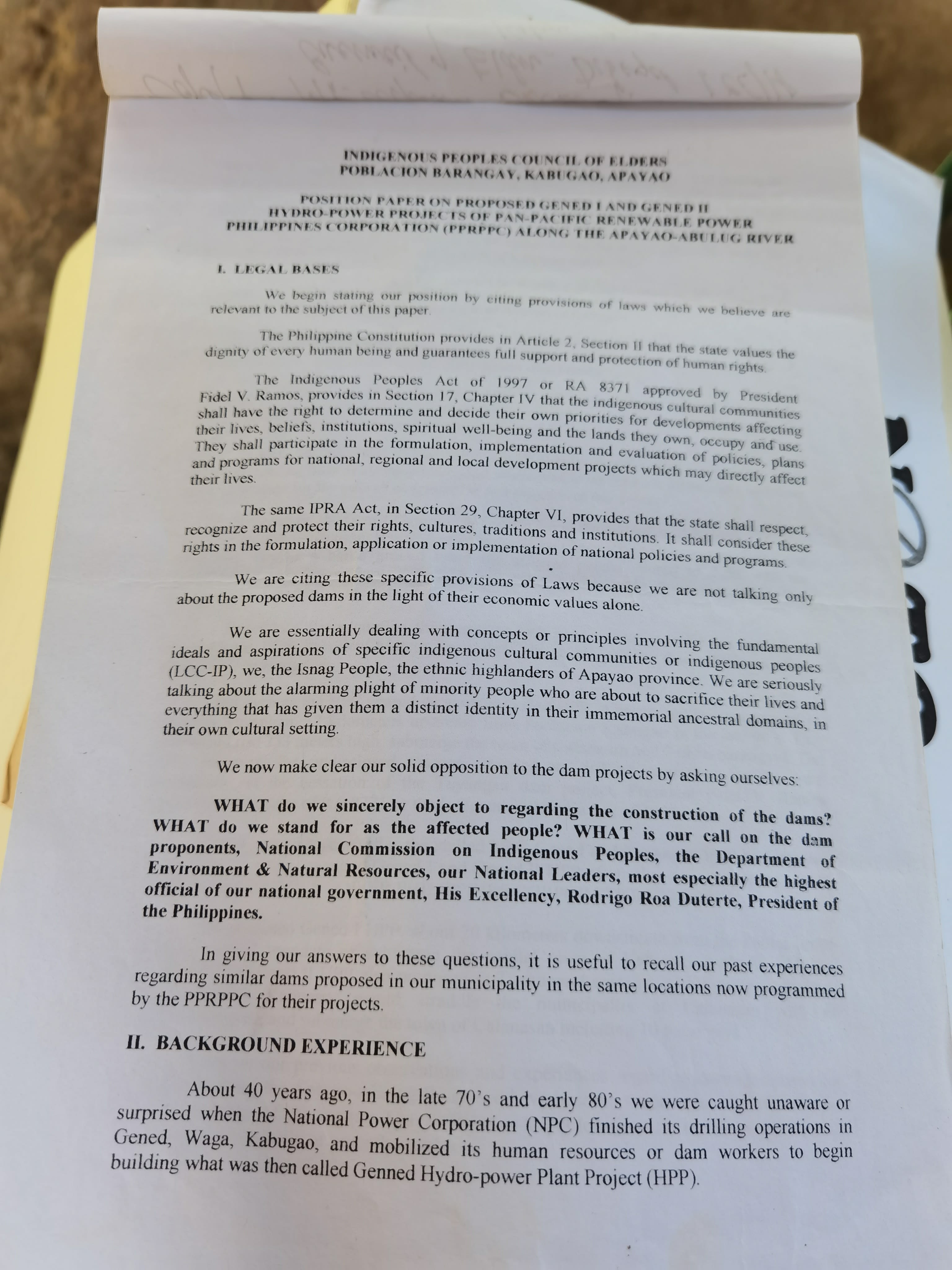 "We know that we have a big role in this struggle against destructive projects entering our community. [...] It is the future of the Isnag that we are fighting for."